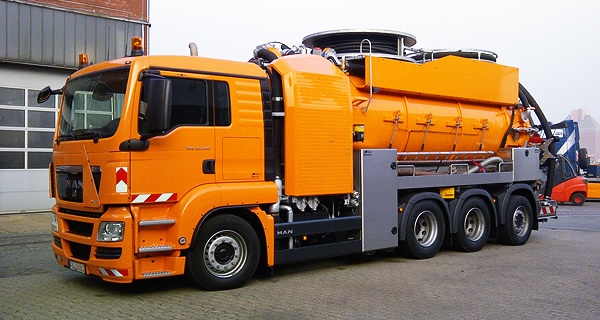 zintegrowany w nadwoziu oraz rura ssąca o specjalnym kształcie umożliwiają odsysanie nieczystości